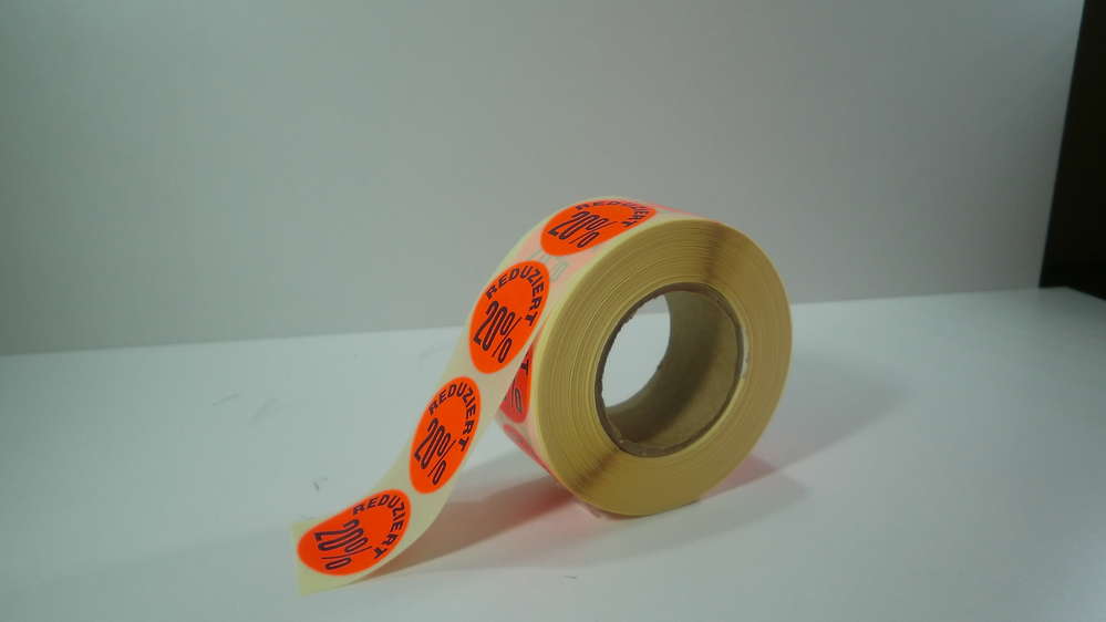1000 Aktionsetiketten 30mm Kreis Etikett leucht rot „Reduziert 20%“, permanent klebend