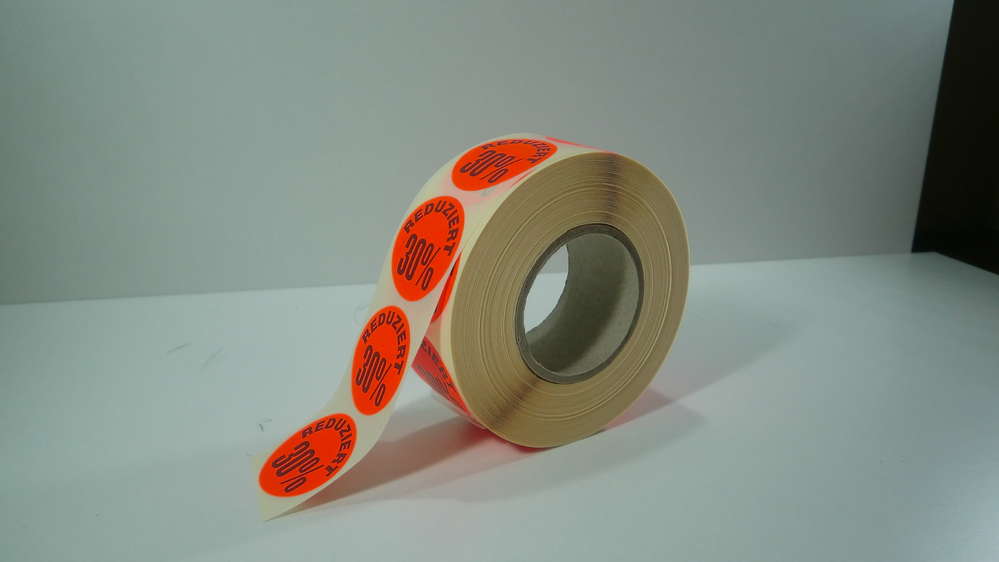 1000 Aktionsetiketten 30mm Kreis Etikett leucht rot „Reduziert 30%“, permanent klebend