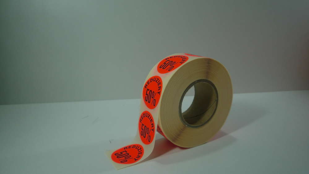 1000 Aktionsetiketten 30mm Kreis Etikett leucht rot „Reduziert 50%“, permanent klebend